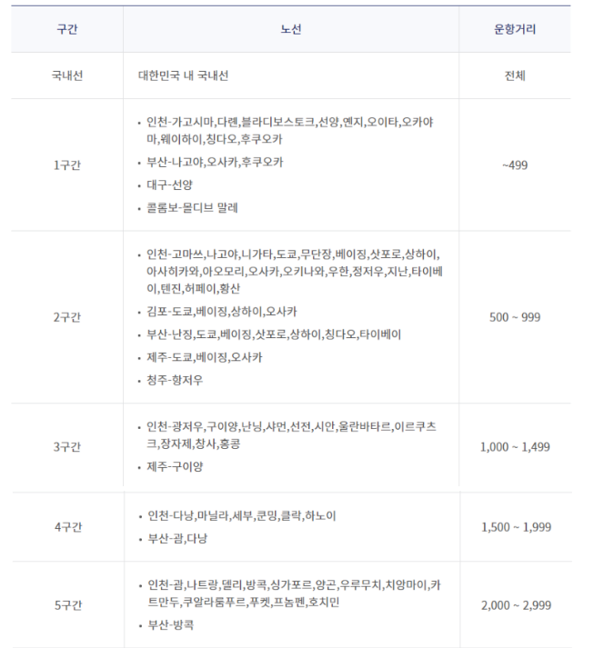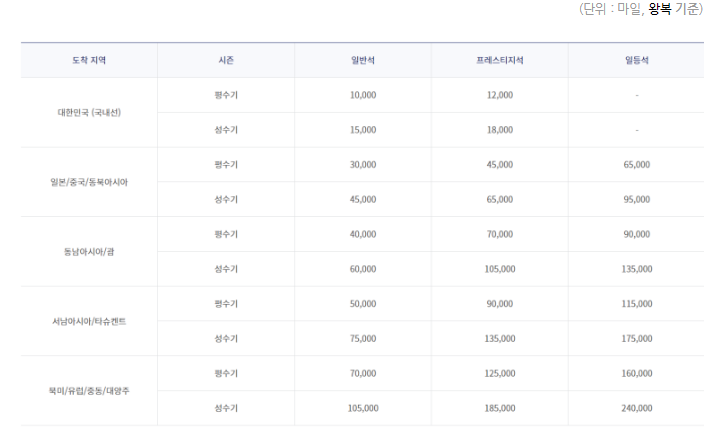 변경된 마일리지는 '편도'기준입니다! 잘보셔야해요
