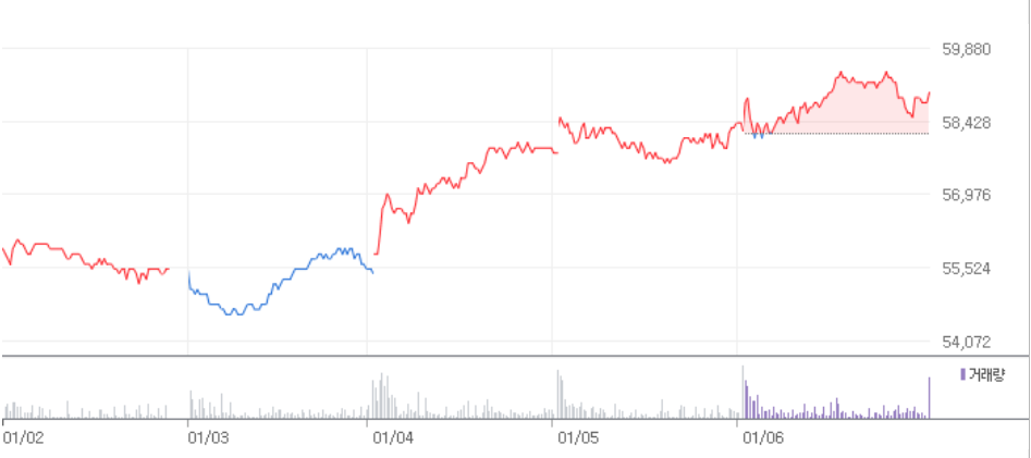 그럼에도 불구하고 1/6 삼성전자의 주가는 소폭 반등한 것을 볼 수 있습니다.