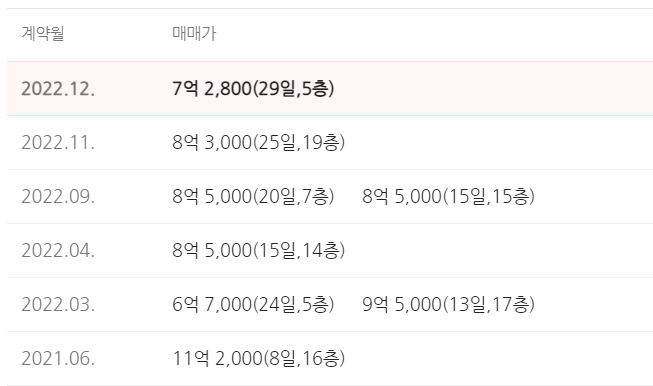 하지만 이후 하락세로 전환하여 2022년 11월 평균 6억 700만원대까지 떨어진 상황입니다.
