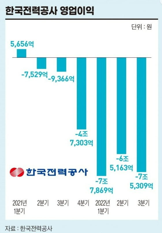 신용등급 'AAA'등급인 한전채가 시중의 자금을 빨아들여 소위 말하는 돈맥경화 현상이 발생하고 있는 것입니다. 금융당국은 필요한 자금을 은행에서 대출받게 하는등 이를 해결하려 노력하지만, 이미 엄청난 적자 누적인 상황에서 해결은 어려워 보입니다.